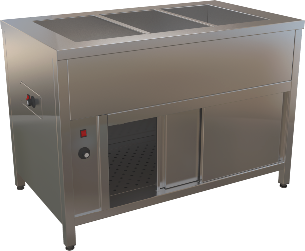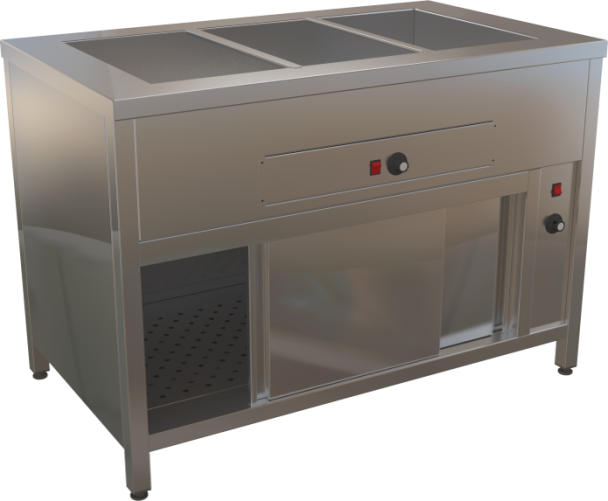 Výdejní stůl se používá k přepravě, přihřívání a k výdeji hotových teplých jídel. Ta se do výdejního stolu (vozíku) vkládají v nerezových gastronádobách. Celonerezové provedení, výšková stavitelnost o 30 mm nebo kolečka pr. 100 mm (2x s brzdou). Vana a spodní vyhřívaný prostor disponuje samostatným topným tělesem , termostatem pro regulaci teploty až do 90°C a vypouštěcím ventilem. Možnost prokládacího provedení posuvnými dvířky. Ovládání a madlo na delší nebo kratší straně. Provedení na 2x GN, 3x GN nebo 4x GN. Dělící příčky k výdejním vozíkům vanovým jsou dodávány zdarma!