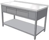 Nerezový stôl s policou 2 zásuvky