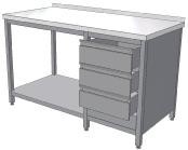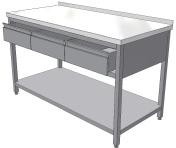 Nerezový stôl s policou blok 3 zásuviek