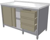 Nerezový stôl s policou 3 zásuvky