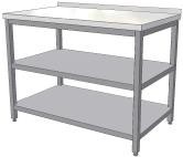 Nerezový stôl s 2 policami